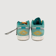 This blue, white, grey, yellow Nike Air Jordan Air Jordan 1 Low SE New Emerald in size 42 comes directly from the personal wardrobe of professional footballer Ricky van Wolfswinkel. It combines refined design with everyday comfort, reflecting his off-pitch style.