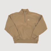 Stüssy Stock Logo Mock Zip Sweatshirt in khaki