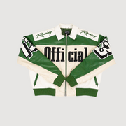 This Green, Beige BOXY FIT PU MOTO COLLARED BOMBER JACKET was worn by Sandy Baltimore, a standout known for their confident style and presence on and off the pitch.
