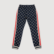 Gucci GG monogram track pants, navy and cream, size S. 100% cotton, excellent, luxury sportwear stunner, Ballers Market drop.