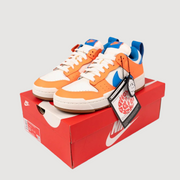 This exclusive pair of Nike Dunk Low Disrupt brings together standout style and sustainable fashion. Originally released by Nike, this pair in Orange, Blue White is in Unworn condition and available now through our curated resale platform.